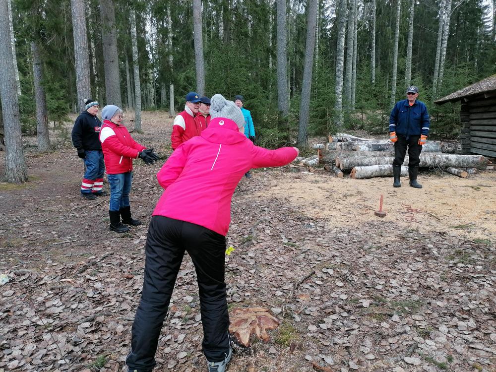 Renkaanheittokisassa viiden ensimmäisen kärki sai renkaita osumaan keppiin seuraavasti: Olli 3, Pepe 2, Hellu, Sirpa ja Tossu 1. Muut saivat sitten tyytyä nollatulokseen.