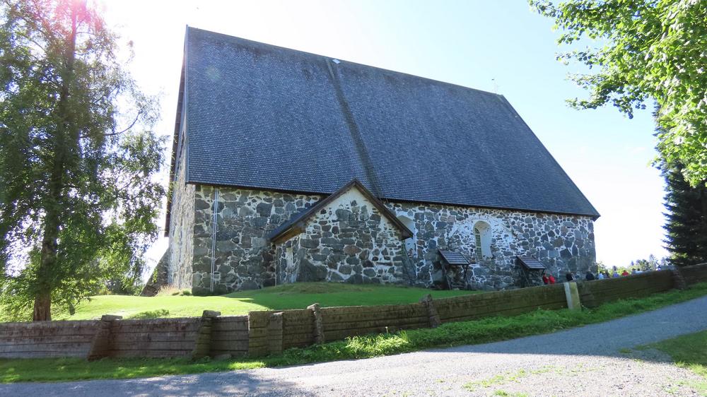 Seuraavaksi lähdimme Maijun asiantuntevalla opastuksella kiertoajelulle Sastamalan kaupunkiin, jonka jälkeen siirryimme Karkussa Rautaveden rannalla sijaitsevaan Pyhän Marian kirkkoon, jonka historiasta Maiju meille kertoi. Lopuksi yllätyksenä kuulimme vielä Urpon loistavasti esittämää gregoriaanista kirkkolaulua, jota kirkon erinomainen akustiikka korosti hienosti.