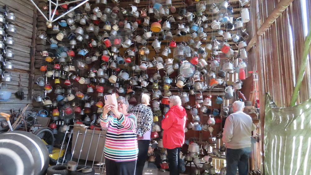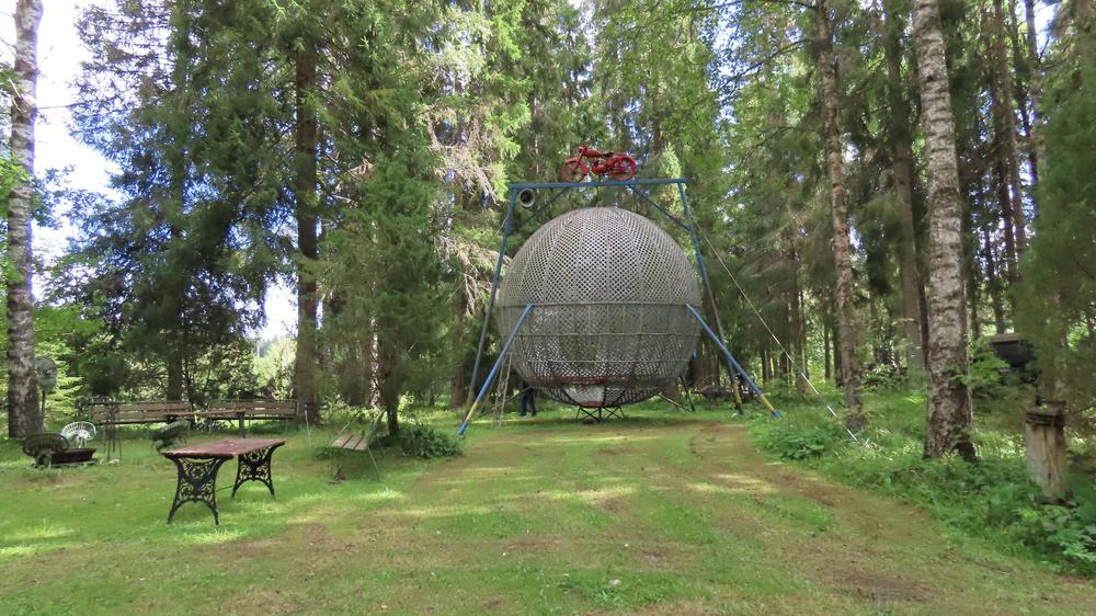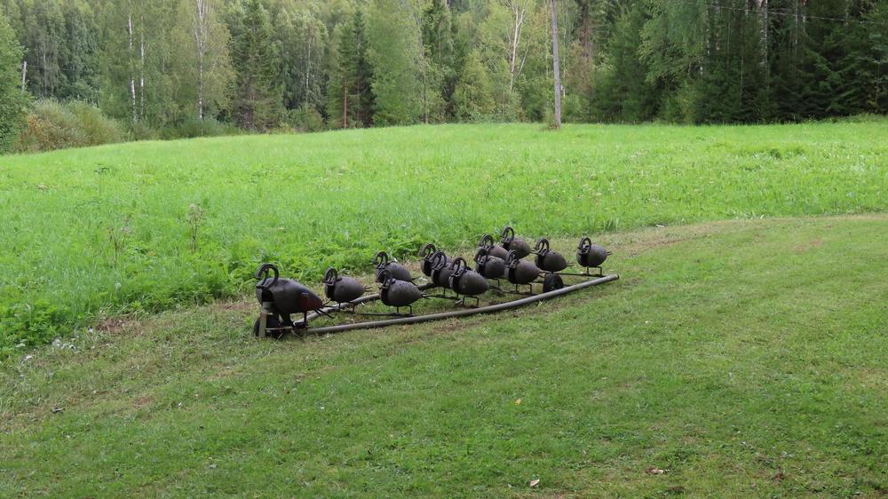 Hämeenkyrössä pääsimme katsomaan vanhoista metallisista käyttöesineistä tehtyjä tilataideteoksia, joita esitteli muusikko Veli-Matti Järvenpää. Hänen isänsä on nämä kokoelmat tehnyt ja Veli-Matti kertoi haluavansa pitää ne esillä vanhan talon ympäristössä. Piharakennusten seinille oli ripustettu mm. kahvipannuja ja lettupannuja näyttäväksi kokoelmaksi. Paikalla oli myös vanhoja autoja ja moottoripyöriä.