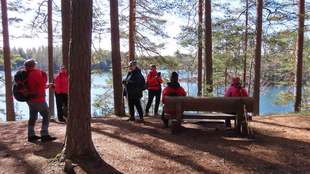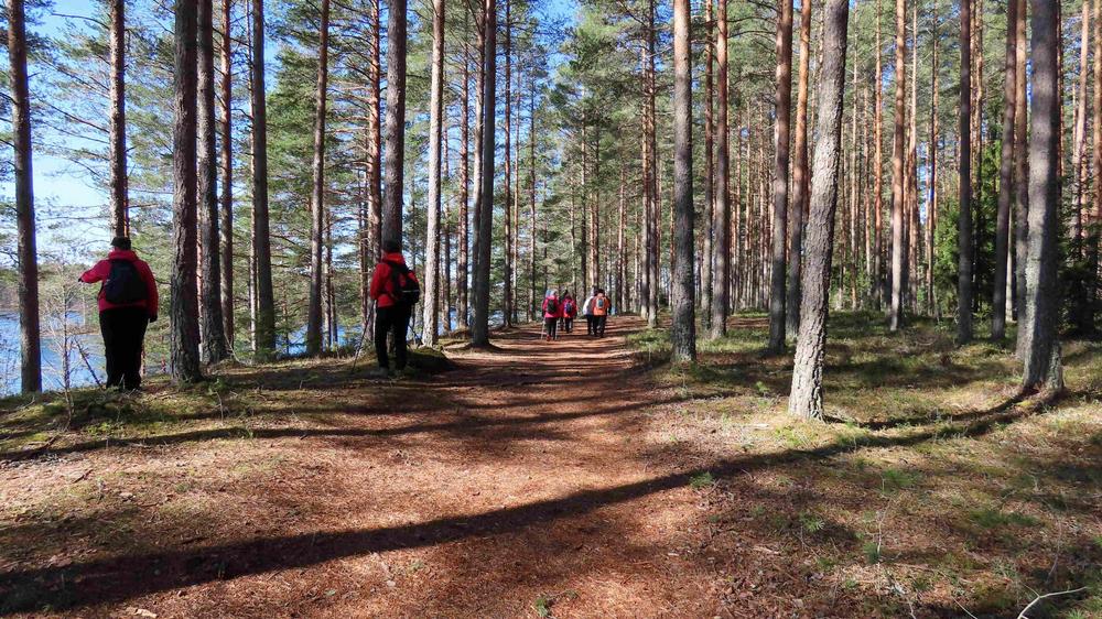 Tänään lähti 20 reipasta retkeilijää Lopelle Iso-Melkuttimen kierrokselle. Hauskaa oli ja sääkin suosi retkeämme. Iso-Melkutin on erittäin kirkasvetinen järvi Hämeen järviylängöllä. Tuli arviolta kahdeksan kilometrin verran patikoitua aurinkoisella mäntykankaalla. Välillä pysähdyttiin tulistelemaan laavulle. Kyllä eväät maistuivatkin hyvältä ja tankkauksen jälkeen jaksettiin taas jatkaa matkaa. Jalkoihinsa oli syytä katsella polulla kulkiessa, sillä aika juurakkoinen kulkuväylä oli. Selvittiin kuitenkin ilman haavereita kun muistettiin olla varovaisia. Mahtava päivä ja mukavat kanssakulkijat! Hienon hetken koki meidän autokuntamme ja takanamme ajaneetkin, kun näimme menomatkalla ison suden, joka syöksyi hurjaa vauhtia automme edestä tien toiselle puolelle metsään. Niin nopeasti se kävi, ettei millään olisi ehtinyt kuvaa ottaa, mutta olihan se erikoinen näky.