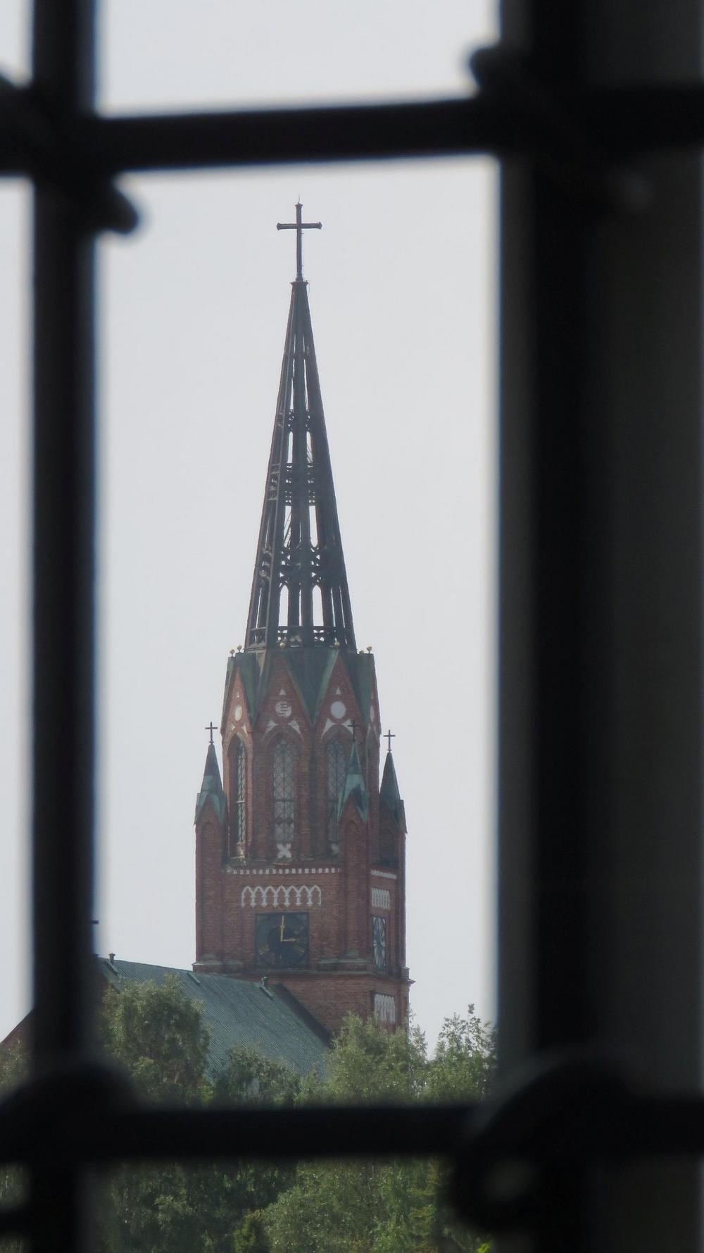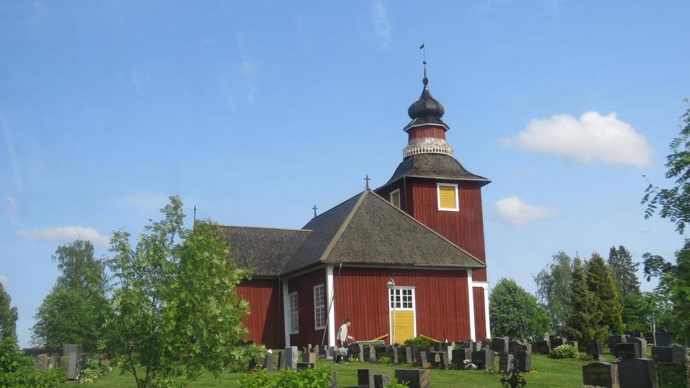 Olli Lindholmin patsas ja Pomarkun vanha kirkko