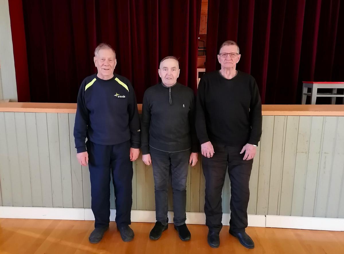 Akaan bocciamestaruuden voittivat Viialan Eläkkeensaajien joukkue. Joukkue vas. Eero Ahola, Matti Virtanen ja Olli Grönroos.