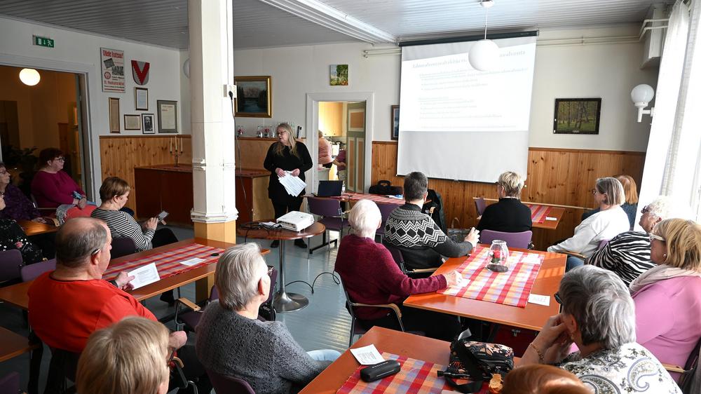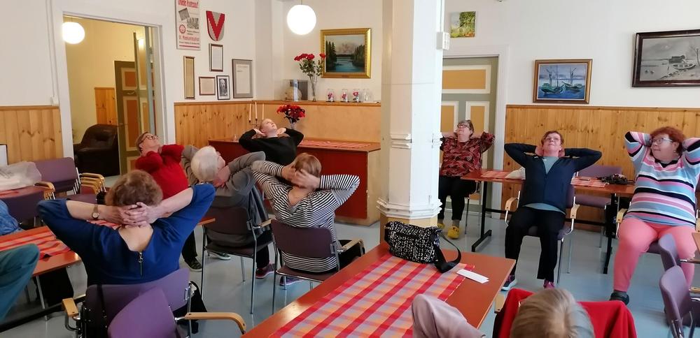 Katolle menemistä ja rännien putsaamista ei ikäihmisille suositella, koska tasapaino heikkenee iän myötä. Myös näön ja kuulon heikkeneminen vaikuttaa kotona selviämiseen. Lopuksi pidettiin vielä pieni jumppahetki yhdessä. Kiitos Päiville asiantuntevasta esityksestä! Teksti: Pirjo Reiman